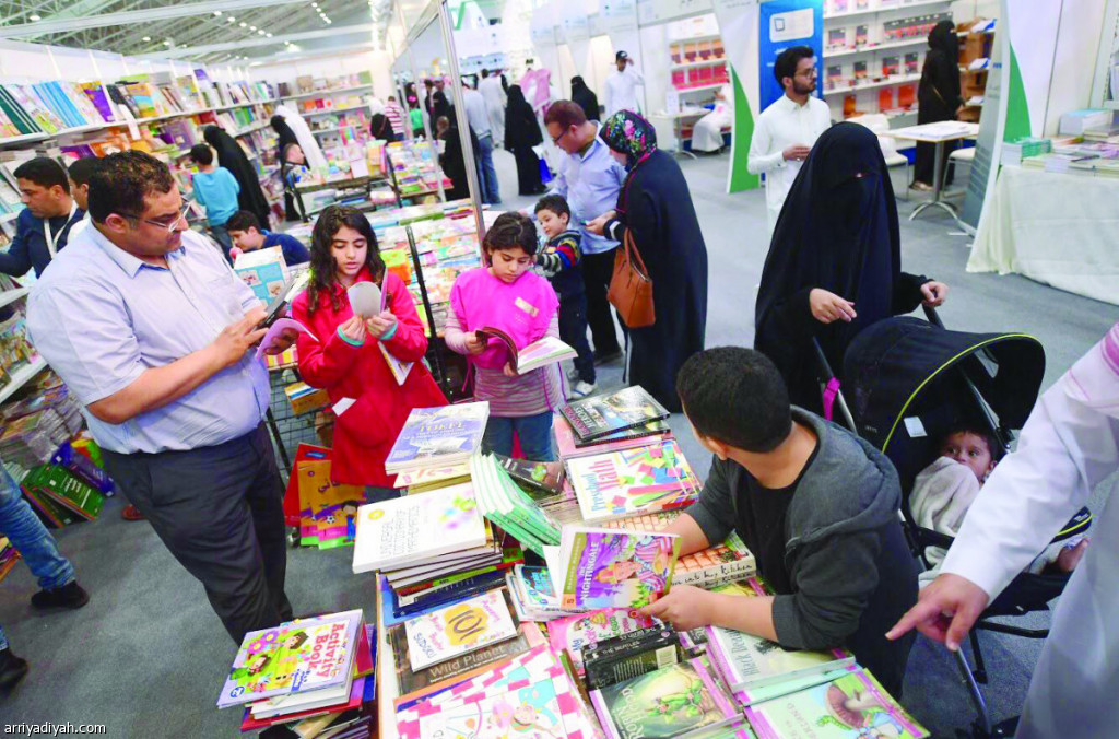 صورة التقطت أمس لزوار في معرض الرياض الدولي للكتاب يطلعون على الكتب في إحدى دور النشر (واس)