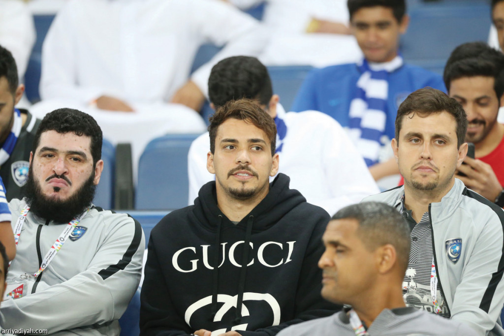 صورة التقطت أمس للبرازيلي إدواردو لاعب فريق الهلال الأول لكرة القدم أثناء حضوره في مدرجات ملعب جامعة الملك سعود دعماً لزملائه اللاعبين في مباراتهم أمام أحد تصوير: علي الظاهري