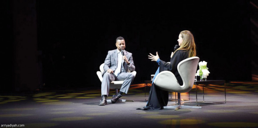 استضافت ريا أبي راشد، مقدمة برنامج "سكوب" السينمائي، على قناة "إم بي سي" أمس الأول، على مسرح مركز الملك عبد العزيز الثقافي "إثراء" في الظهران، كوبا جودينج جونيور الممثل الأمريكي الحائز على جائزة الأوسكار، مساء أمس الأول في "أمسية مع النجوم"، على هامش مهرجان الأفلام السعودية في الشرقية، الذي اختتم فعالياته أمس الأول في الظهران بتنظيم من جمعية الثقافة والفنون في الدمام بالتعاون مع "إثراء".