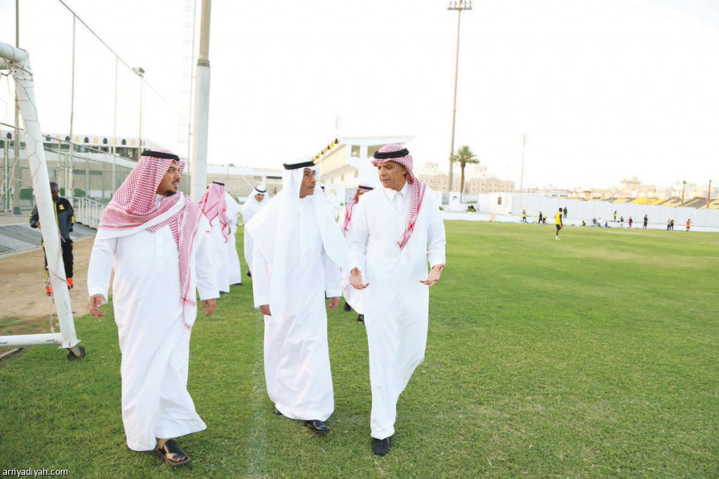 صورة التقطت أمس للدكتور مازن فقيه الرئيس التنفيذي لمجموعة فقيه الطبية يعاين ملاعب أكاديمية الاتحاد لكرة القدم في مقره بجدة متوسطاً المهندس لؤي ناظر رئيس النادي وحمد الصنيع نائبه (المركز الإعلامي ـ الاتحاد)