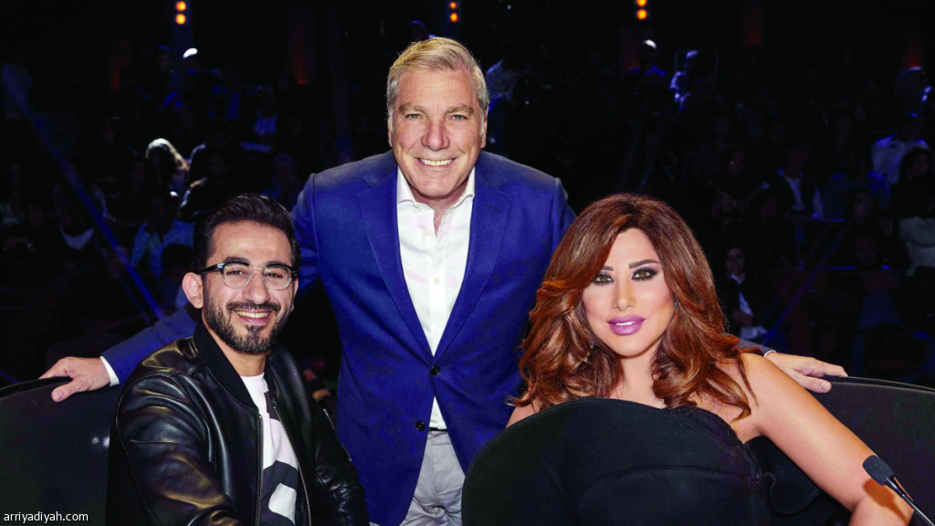 صورة التقطت للثلاثي نجوى كرم وعلي جابر وأحمد حلمي أعضاء لجنة تحكيم برنامج Arabs Got Talent (المركز الإعلامي ـ mbc)