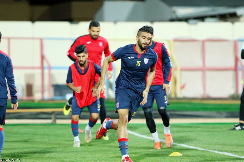 صورة التقطت أمس لمجاهد المنيع مهاجم فريق الحزم الأول لكرة القدم أثناء التدريبات التي فرضها الروماني دانيال أيسايلا (المركز الإعلامي ـ الحزم)
