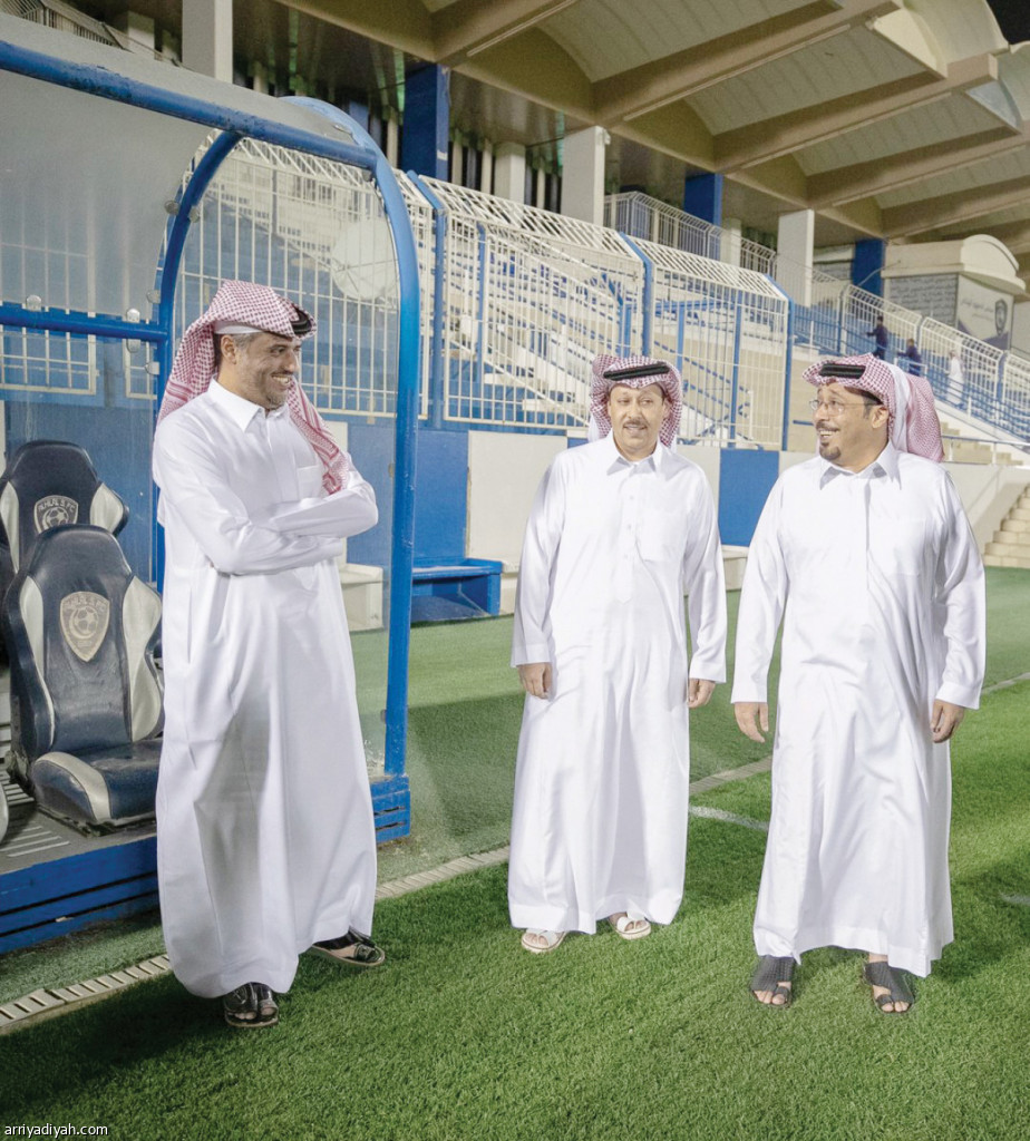 صورة التقطت أمس للأمير سعود بن تركي رئيس الهلال الأسبق والأمير عبد العزيز بن تركي عضو شرف النادي يتحدثان مع فهد الراشد نائب الرئيس لدى حضورهما تدريب الفريق الأول لكرة القدم دعماً له عشية مواجهته الاتفاق في الدمام ضمن ربع نهائي كأس خادم الحرمين الشريفين (المركز الإعلامي ـ الهلال)