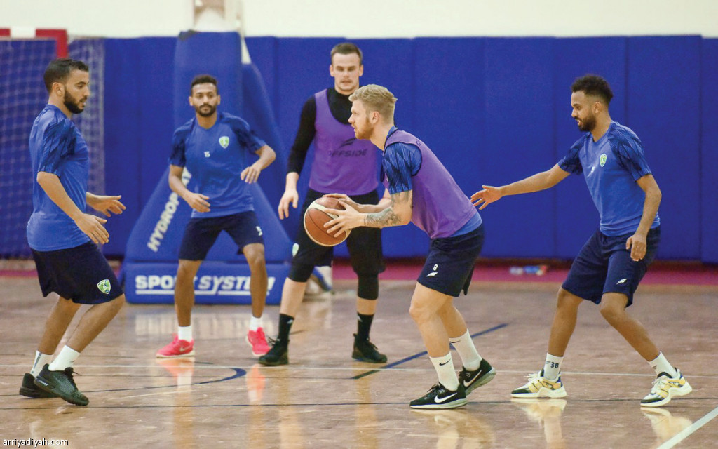 صورة التقطت أمس من مناورة كرة السلة التي أجراها لاعبو فريق الفتح الأول لكرة القدم (المركز الإعلامي ـ الفتح)