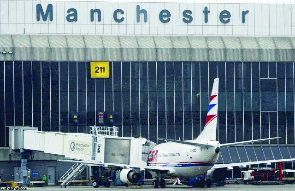 صورة التقطت لطائرة رابضة داخل مطار مانشستر الدولي في بريطانيا (أرشيفية)