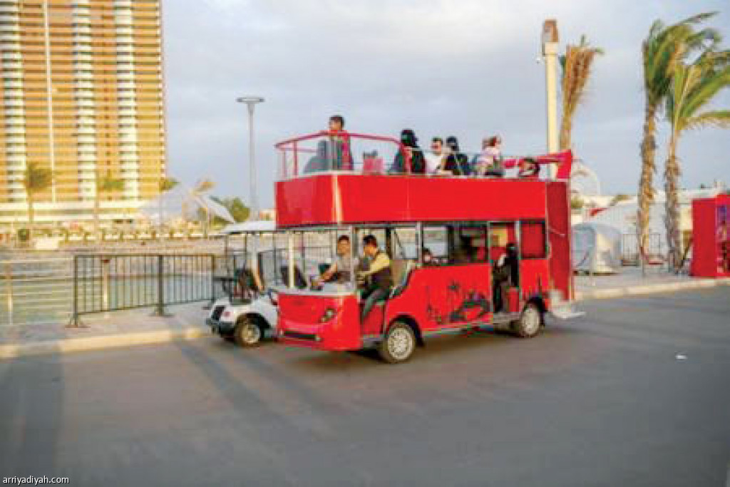 صورة التقطت أمس لحافلة خاصة بنقل الزوار في الواجهة البحرية (المركز الإعلامي ـ اللجنة المنظمة)