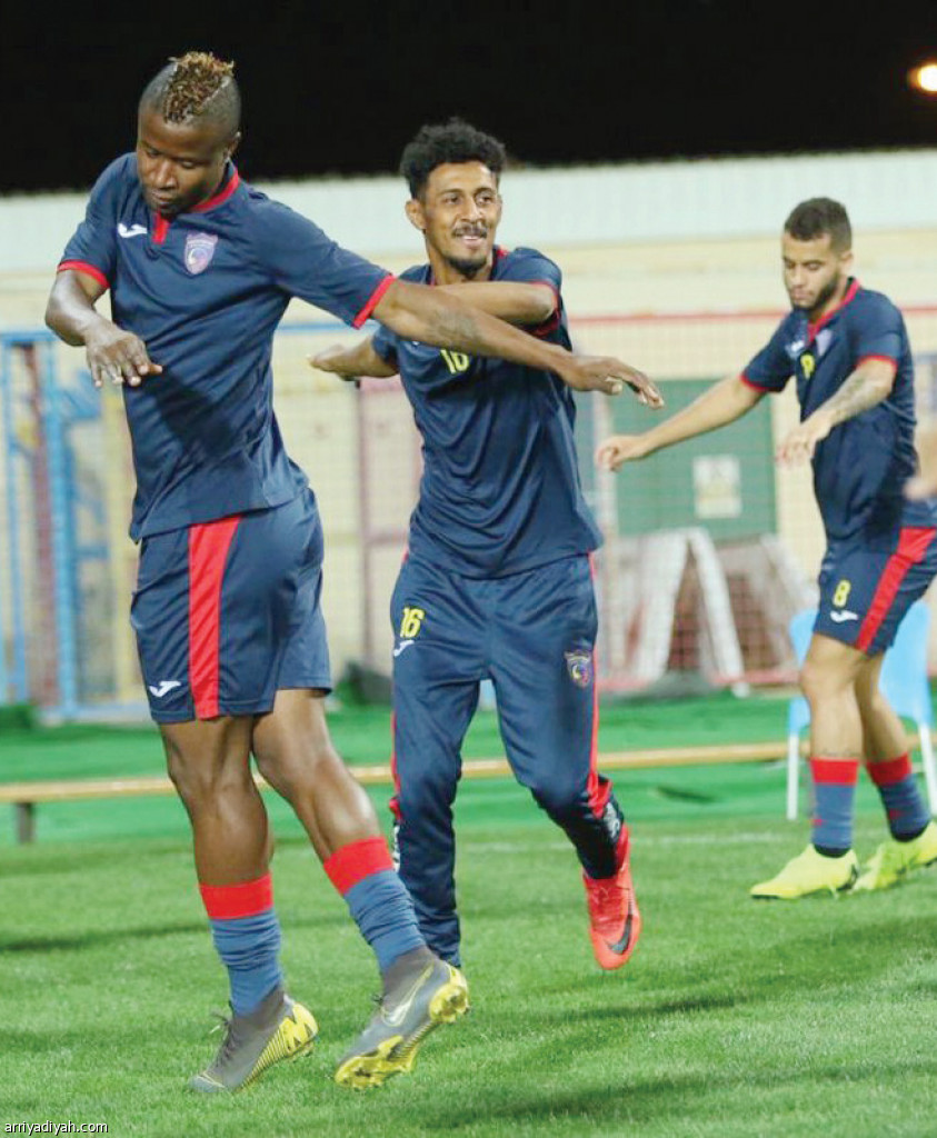 أدى فريق الحزم تدريباته استعدادًا لمواجهة الرائد الخميس المقبل ضمن الجولة الـ 27 من دوري كأس محمد بن سلمان للمحترفين.. وفي الصورة التي التقطت أمس يظهر النيجيري كينيدي وإسماعيل المسلمي والبرازيلي رودولفو يؤدون تمرينًا لياقيًّا (المركز الإعلامي ـ الحزم)