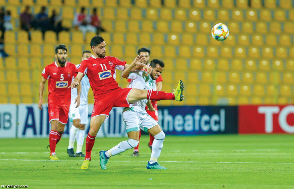 صورة التقطت أمس لكمال كاميابينيا لاعب بيرسبوليس يمنع عسيري من التقدم تصوير: محمد المانع