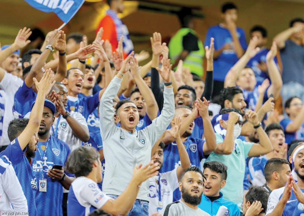 صورة التقطت أمس لجماهير هلالية في مدرجات ملعب الجوهرة مبتهجة بفوز فريقها على الأهليتصوير: علي خمج