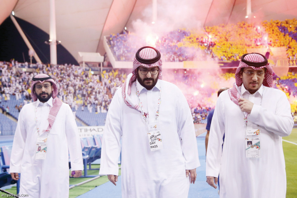 صورة التقطت أمس الأول لسعود السويلم رئيس النصر و عبد العزيز الجليل نائبه خلال مباراة الكلاسيكو تصوير: عبد العزيز النومان