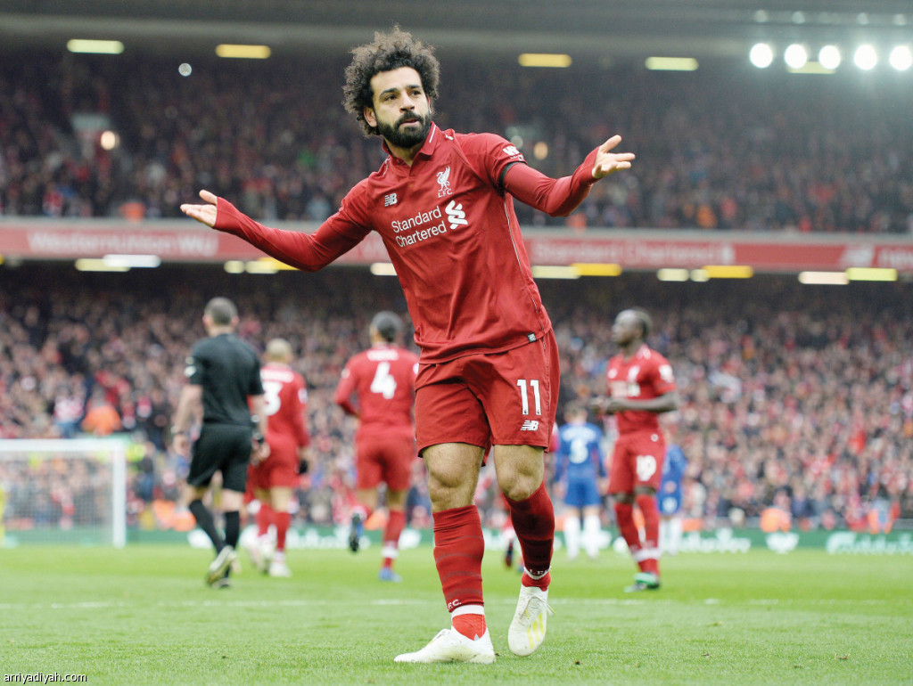 قاد المصري محمد صلاح نجم ليفربول فريقه للفوز على تشيلسي 2ـ0 واستعادة صدارة الدوري الإنجليزي بعد أن أسهم في صناعة الهدف الأول وسجل الثاني.. وفي الصورة التي التقطت أمس صلاح يحتفل بهدفه في مرمى تشيلسي خلال المباراة التي جمعت الطرفين على ملعب أنفيلد