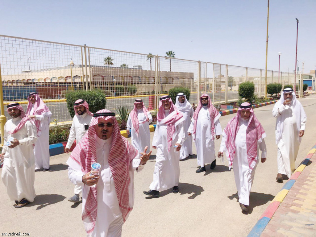صورة التقطت أمس لفهد المالك رئيس هيئة أعضاء الشرف في الحزم يتجول مع شرفيين في مقر النادي في محافظة الرس (خاصة بالرياضية)