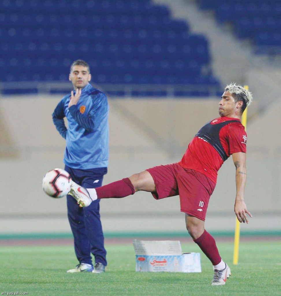 صورة التقطت أمس للبرازيلي بيسمارك مهاجم فريق القادسية خلال المناورة التي جرت على ملعب الراكة استعداداً لمواجهة الباطن غداً (المركز الإعلامي ـ القادسية)