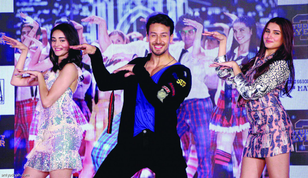 صورة التقطت أمس لأنانيا بانداي وتيجر شروف الممثلين الهنديين خلال مشاركتهما في استعراض غنائي في مومباي للأغنية الأولى للفيلم الكوميدي العاطفي "طلاب السنة الثانية" ومن المقرر أن يعرض الفيلم في دور السينما في العاشر من مايو المقبل (الفرنسية)