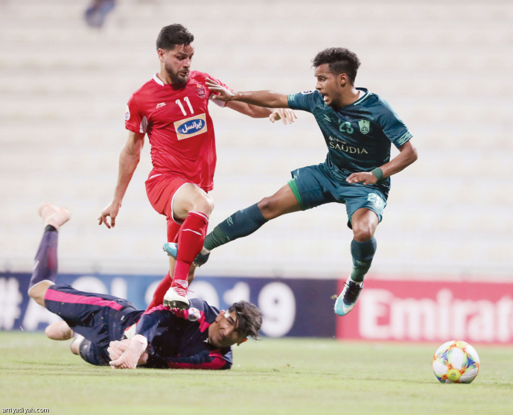 صورتان التقطتا أمس لعبد الرحمن غريب لاعب فريق الأهلي الأول لكرة القدم خلال تعرضه للخشونة من قبل مدافع وحارس بيرسبوليس الإيراني.. حيث تسببت مهارة غريب في احتساب ركلة جزاء للأهلي سجل منها السومة هدف فريقه الأول تصوير: بشير صالح