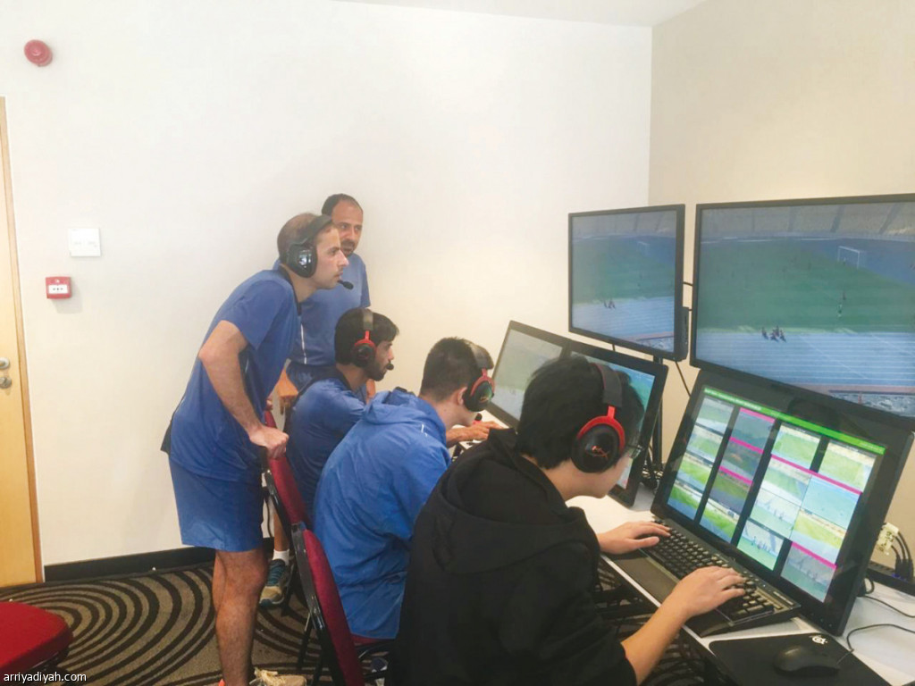 صورة التقطت لحكام يطبقون تقنية الـ “VAR” خلال دورة كوالالمبور وخلفهما السعوديان تركي الخضير الحكم الدولي وعلي الطريفي عضو لجنة الحكام الآسيوية (خاصة بالرياضية)