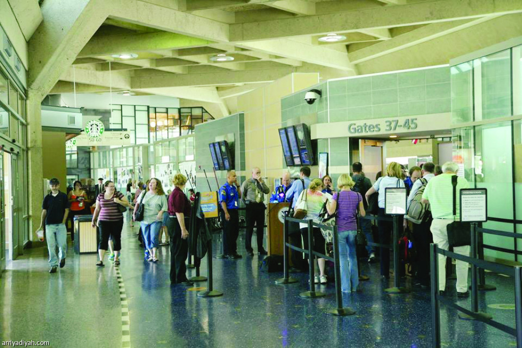 صورة التقطت لمسافرين داخل صالة في مطار كانساس سيتي الدولي بولاية ميسوري وسط الولايات المتحدة (المركز الإعلامي ـ مطار كانساس)