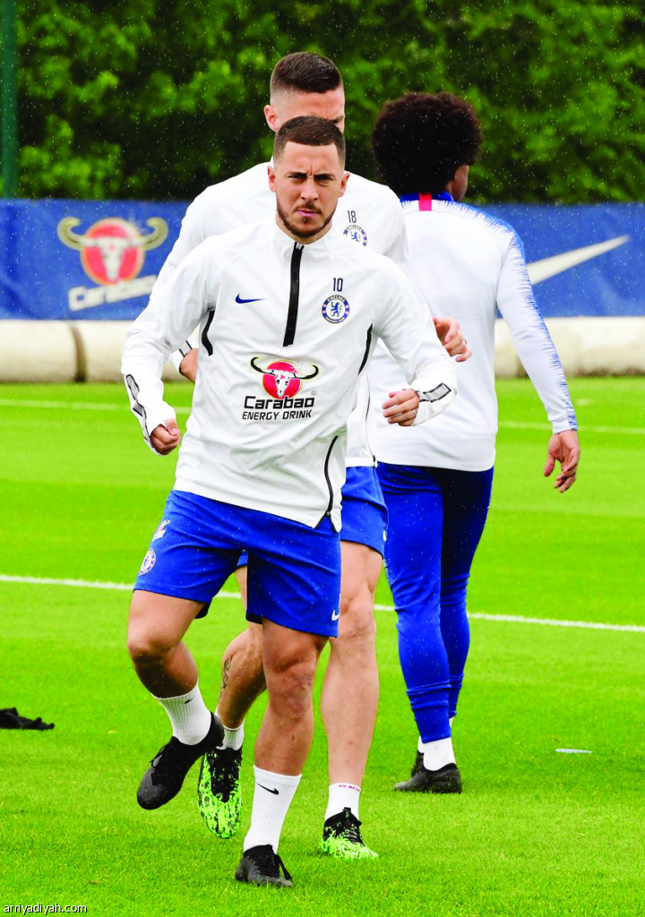 صورة التقطت أمس للبلجيكي إيدين هازارد لاعب نادي تشيلسي الإنجليزي أثناء التدريبات (المركز الإعلامي ـ تشيلسي)