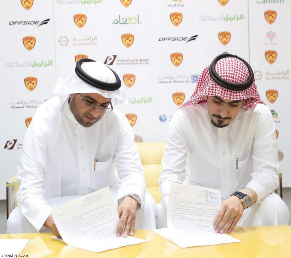صورة التقطت أمس لفارس المفلح المدير التنفيذي للقادسية وممثل مكتب الجعفري أثناء التوقيع(المركز الإعلامي ـ القادسية)