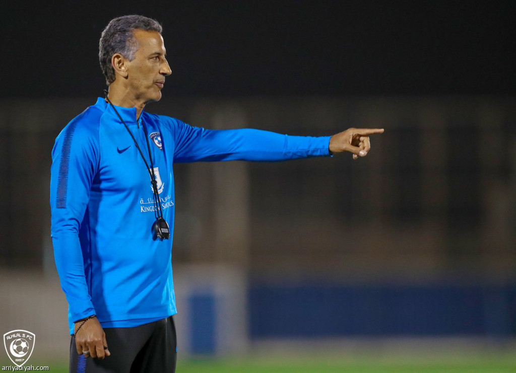 صورة التقطت للبرازيلي شاموسكا مدرب فريق الهلال الجديد يوجه اللاعبين في مستهل مشواره مع الفريق الأزرق (المركز الإعلامي ـ الهلال)