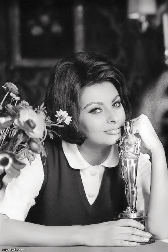 صورة التقطت لصوفيا لورين مع جائزة الأوسكار (أرشيفية)