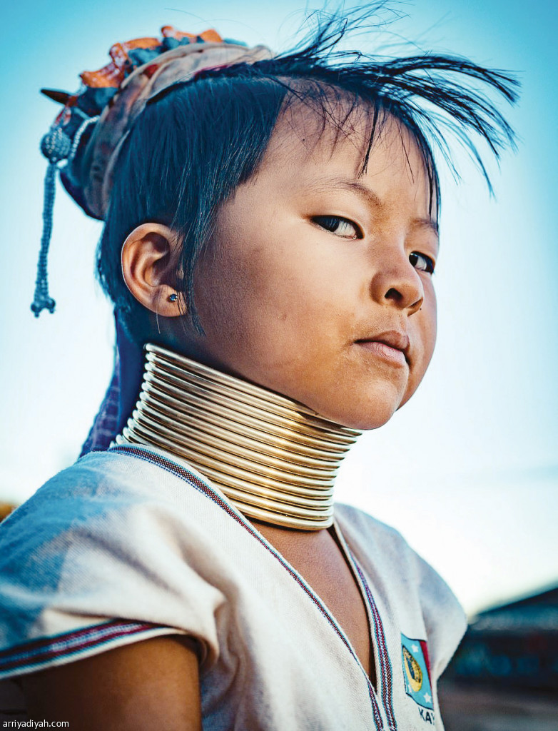 وتلبس السيدات حلقات ثقيلة تصل إلى 10 كيلو جرامات حول أعناقهن عندما يبلغن الخامسة من العمر، وتظل تلك الحلقات معهن حتى نهاية حياتهن.