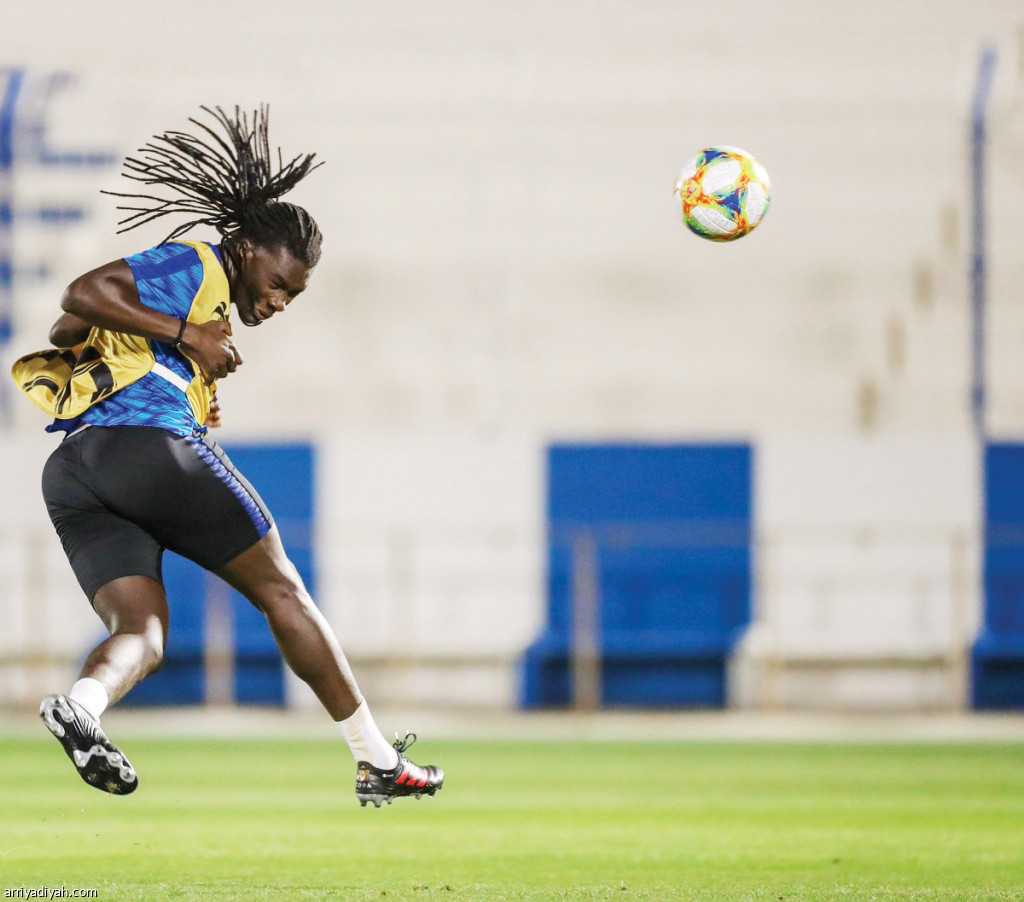 صورة التقطت أمس للفرنسي جوميز مهاجم الهلال يسدد الكرة برأسه خلال التدريبات استعدادًا للقاء العين الإماراتي ضمن الجولة الخامسة من دوري أبطال آسيا (المركز الإعلامي ـ الهلال)