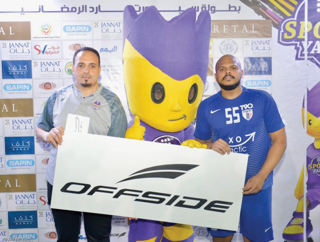 صورة التقطت أمس الأول لمسرحي حارس مرمى القادسية يتسلم جائزة أفضل لاعب في مباراة ببطولة رمضانية شارك فيها مهاجمًا (المركز الإعلامي ـ سبورت يارد)