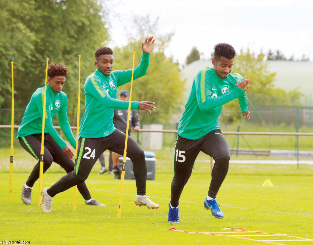 اكتملت صفوف المنتخب السعودي لكرة القدم تحت 20 عامًا بالتحاق فراس البريكان مهاجم فريق النصر بمعسكر بلدة باد فالترسدروف النمساوية الإعدادي لكأس العالم للشباب في بولندا.. وفي الصورة التي التقطت أمس يشارك فراس الغامدي محمد الشنقيطي وخليفة الدوسري في حصة تدريبية قادها خالد العطوي المدرب استعداداً لمواجهة المكسيك تجريبياً اليوم(المركز الإعلامي ـ اتحاد القدم)