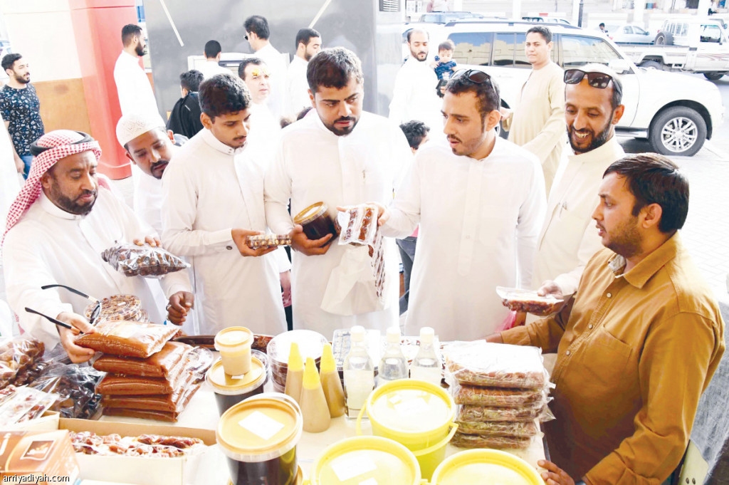 صورة التقطت أمس لمتسوقين بأحد الأسواق في المنطقة الشرقية حضروا لشراء التمور (واس)