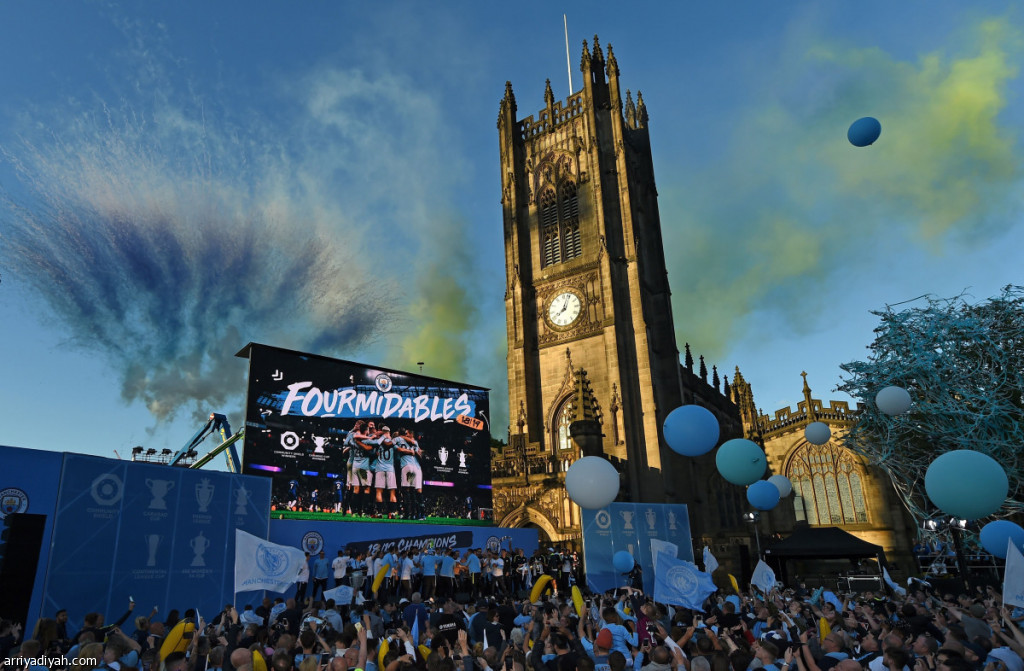 تجول فريق مانشستر سيتي الإنجليزي لكرة القدم على متن حافلة مكشوفة يوم الاثنين بين جماهيره بشوارع مدينة مانشستر، احتفالا بالإنجاز غير المسبوق في تاريخ الأندية الإنجليزية حيث توج الفريق خلال الموسم المنقضي بثلاثية الدوري الممتاز وكأس رابطة المحترفين الإنجليزية وكأس الاتحاد الإنجليزي.
