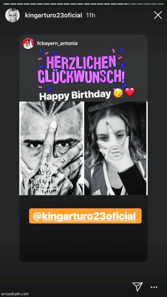 هنَّأ عددٌ من متابعي التشيلي أرتورو فيدال، لاعب وسط فريق برشلونة الإسباني لكرة القدم، عبر حسابه الرسمي في إنستجرام بـ "يوم ميلاده". واستعرض النجم العالمي تهنئة الجماهير بالاحتفال عبر طريقته الخاصة .