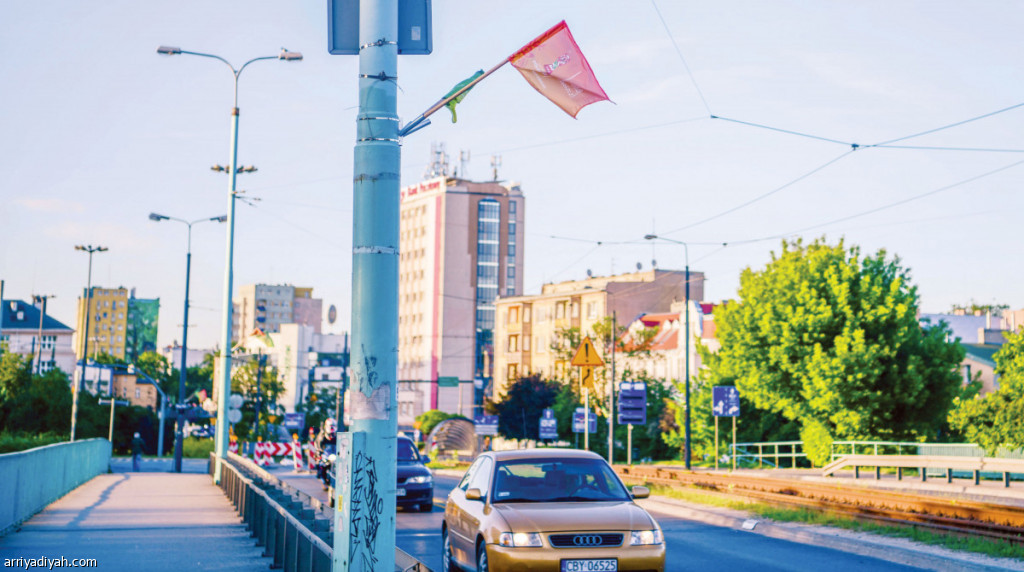 صورة التقطت أمس لأعلام الدول المشاركة بالبطولة في شوارع بيدجوشتش
