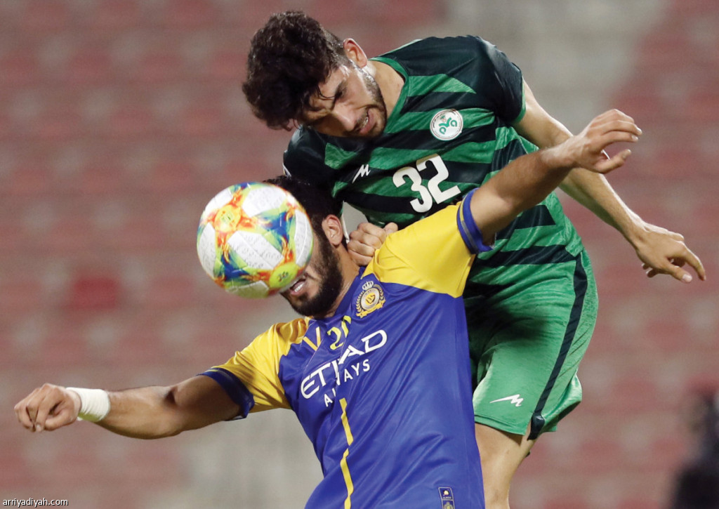 تعادل النصر بطل الدوري السعودي في نسخته الاستثنائية التي حملت اسم ولي العهد ـ حفظه الله ـ، مع ذوب أهن الإيراني سلبًا، وحل ثانيًا في مجموعته ليواجه بذلك الوحدة الإماراتي في 5 أغسطس المقبل، ذهاباً في الرياض، وفي الـ 12 من الشهر ذاته إياباً في أبوظبي في ثمن النهائي.. وفي الصورة التي التقطت أمس.. حمد المنصور مدافع النصر في صراع على الكرة مع حميد مالكي مدافع ذوب آهن (الفرنسية)