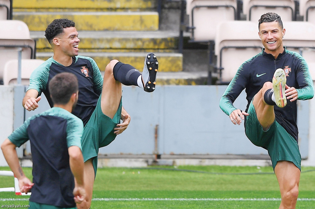 عاد كريستيانو رونالدو عن اعتزاله ليقود البرتغال منتخب بلاده اليوم في نصف نهائي النسخة الافتتاحية من دوري الأمم الأوروبية لكرة القدم أمام سويسرا في لشبونة محاولاً مع مواهب جديدة منح بلاده لقبًا جديدًا بعد كأس أوروبا 2016.. وفي الصورة التي التقطت أمس رونالدو ينفذ تمارين الإطالة برفقة زميله بيبي استعدادًا للمباراة (أسوشيتد برس)