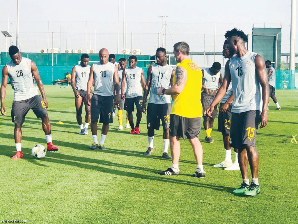 صورة التقطت أمس للاعبي المنتخب الغاني خلال حصة تدريبية في معسكرهم في مدينة العين الإماراتية استعدادًا لمباراة جنوب إفريقيا اليوم وديًا ضمن تحضيرات المنتخبين لبطولة أمم إفريقيا التي ستنطلق في مصر 21 يونيو المقبل (المركز الإعلامي ـ الاتحاد الغاني لكرة القدم)