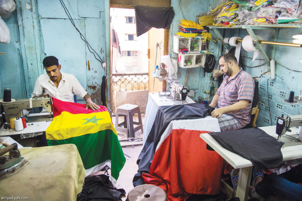 أنعشت بطولة الأمم الإفريقية التي تستضيفها مصر خلال الفترة من 21 يونيو إلى 19 يوليو الأسواق المحلية التي نشطت في بيع التذكارات وأعلام الدول المشاركة.. ويظهر في الصورة التي التقطت أمس رجلان في ورشة وسط القاهرة يحيكان علمين لمصر وغانا (الأوروبية)