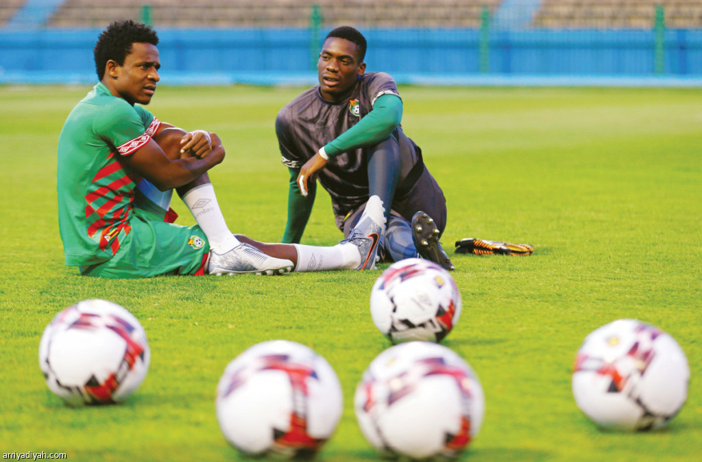 صورة التقطت أمس للاعبين من منتخب زيمبابوي يأخذان قسطاً من الراحة بعد نهاية التدريبات استعداداً للقاء مصر في افتتاح منافسات بطولة كأس أمم إفريقيا 2019 (رويترز)