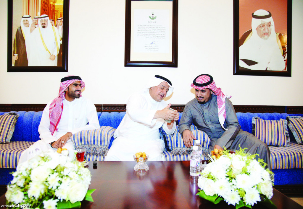 يقضي المهندس أحمد الصائغ رئيس الأهلي ساعات طويلة داخل النادي من أجل حسم العديد من الملفات بعد انتخابه من قِبل الجمعية العمومية وعدم تقديم أي طعن في إجراءاتها عقب قفل باب الطعون.. وعقد الصائغ اجتماعًا مع الأمير منصور بن مشعل عضو الشرف والمشرف العام على الفريق الأول لكرة القدم.. وفي الصورة التي التقطت أمس منصور بن مشعل يعرض رسالة من جواله لعبد العزيز النهدي مدير المركز الإعلامي فيما يبدو الصائغ على يساره تصوير: عبد الله الفالح