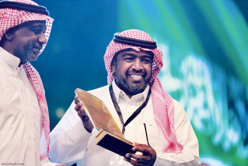 صورة التقطت أمس الأول لمتعب مدير الشركة المنظمة للحفل يحمل الدرع