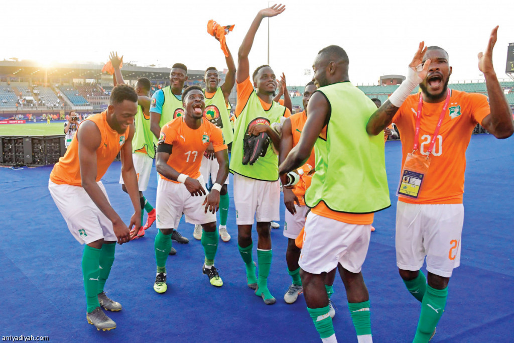 صورة التقطت أمس للاعبي كوت ديفوار أثناء احتفالاتهم عقب الفوز على جنوب إفريقيا (الفرنسية)