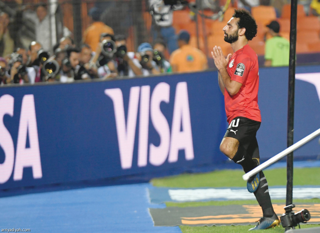 حجز منتخب مصر الأول لكرة القدم مقعده في الدور الثاني من بطولة كأس الأمم الإفريقية، بعد ضمان تجاوزه دور المجموعات إثر فوزه على الكونغو 2ـ0 في ثاني مبارياتهما ضمن المجموعة الأولى.. وفي الصورة التي التقطت أمس، المصري محمد صلاح يحتفل بالهدف الثاني الذي أحرزه في مرمى الكونغو (الفرنسية)