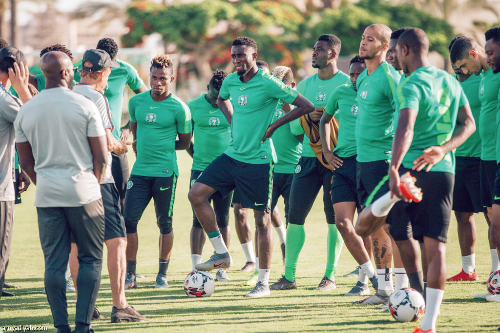صورة التقطت أمس الأول من تدريبات نيجيريا استعداداً للقاء مدغشقر (المركز الإعلامي ـ الاتحاد الإفريقي)