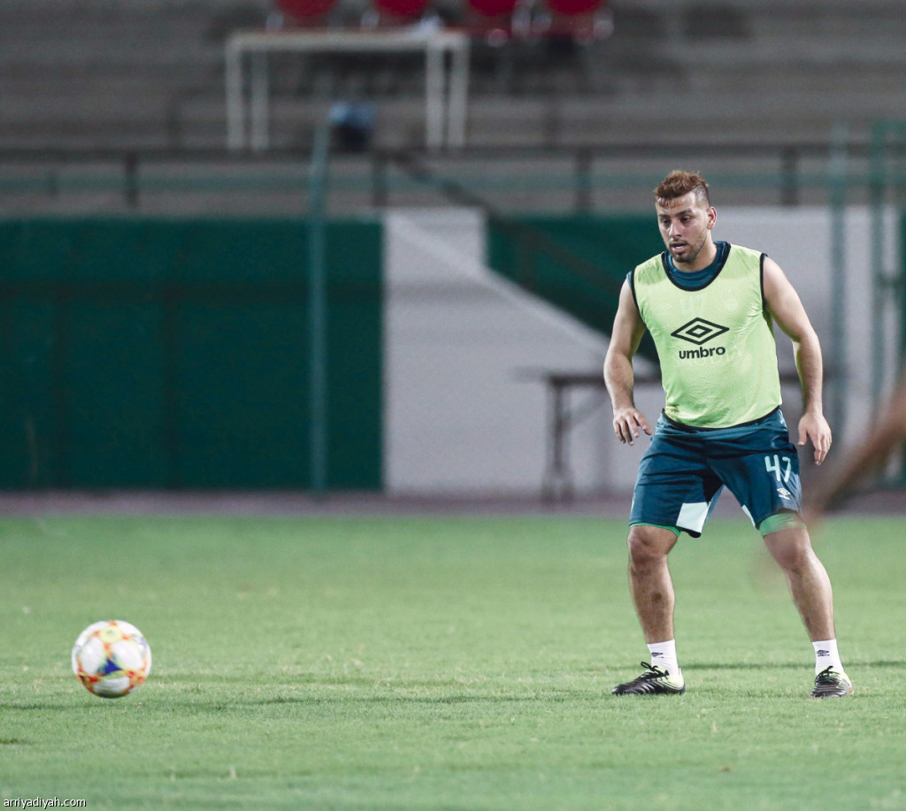 صورة التقطت أمس لمصطفى بصاص لاعب فريق الأهلي الأول لكرة القدم يشارك في الحصة التدريبية الأولى لفريقه بعد العودة من الإجازة ضمن إطار التحضيرات للموسم الجديد تصوير: وهبان خبتي