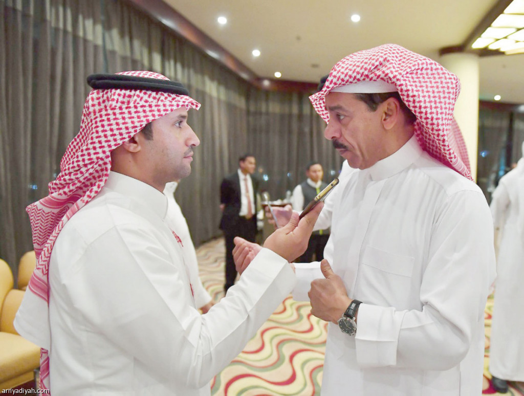 صورة التقطت أمس الأول لصالح النعيمة يتحدث إلى الزميل عبدالرحمن مشبب تصوير: عبدالرحمن السالم