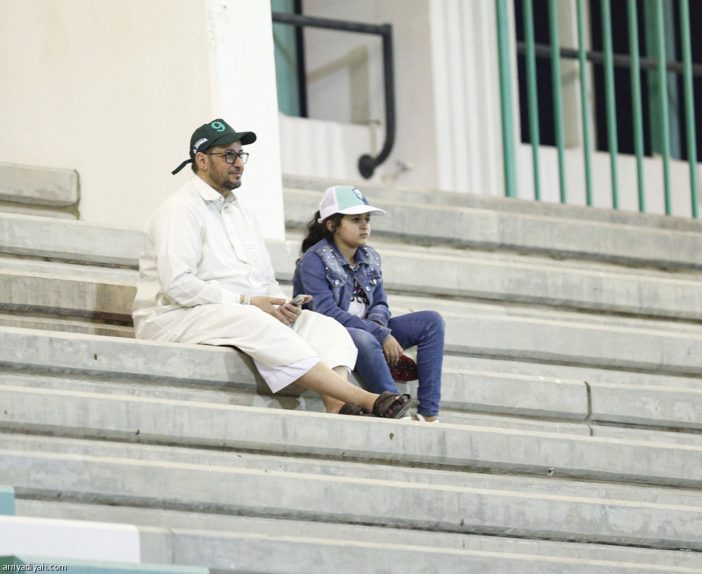 صورة التقطت أمس لمشجع أهلاوي حضر برفقة ابنته لمشاهدة تدريبات فريقه تصوير: وهبان خبتي