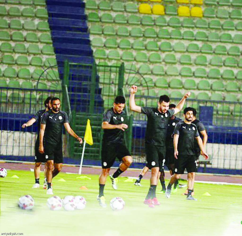صورة التقطت أمس الأول لمحمود الونش لاعب مصر يتقدم زملاءه أثناء تمارين اللياقة (المركز الإعلامي ـ الاتحاد )