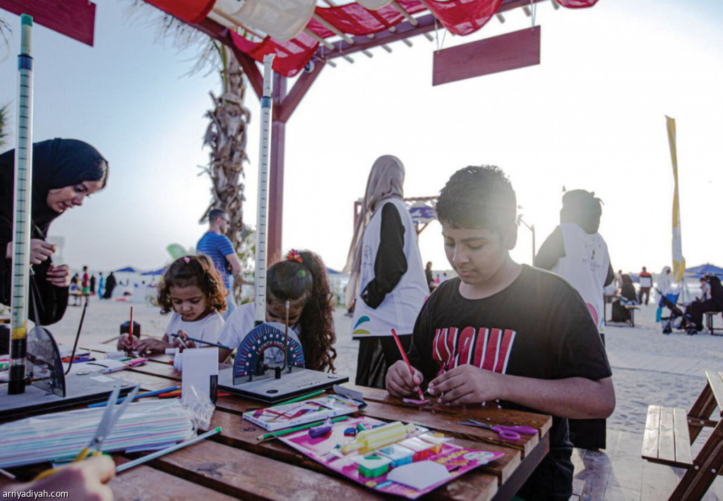 صورة التقطت أمس الأول لأطفال يؤدون أعمال يدوية من مبادرات مسك في شاطئ الإسكندرية ضمن فعاليات موسم جدة (المركز الإعلامي ـ مسك)