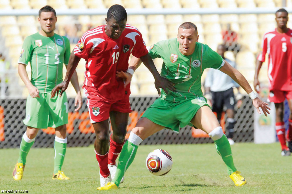 صورة التقطت لحسان يبدة لاعب وسط الجزائر يحاول إبقاء الكرة في حوزته وسط مضايقة ديفي باندا لاعب مالاوي في مباراة المنتخبين في أمم إفريقيا 2010 (أرشيفية)