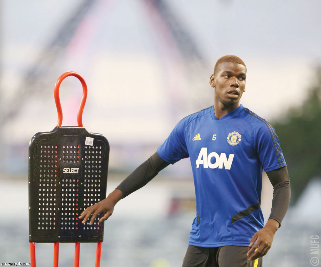 صورة التقطت أمس لبول بوجبا في الحصة التدريبية لفريق مانشستر في مدينة بيرث الأسترالية (المركز الإعلامي ـ مانشستر)